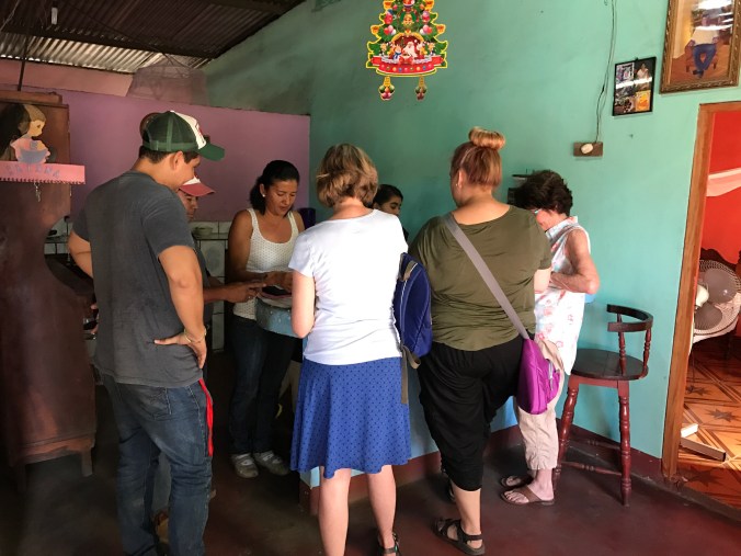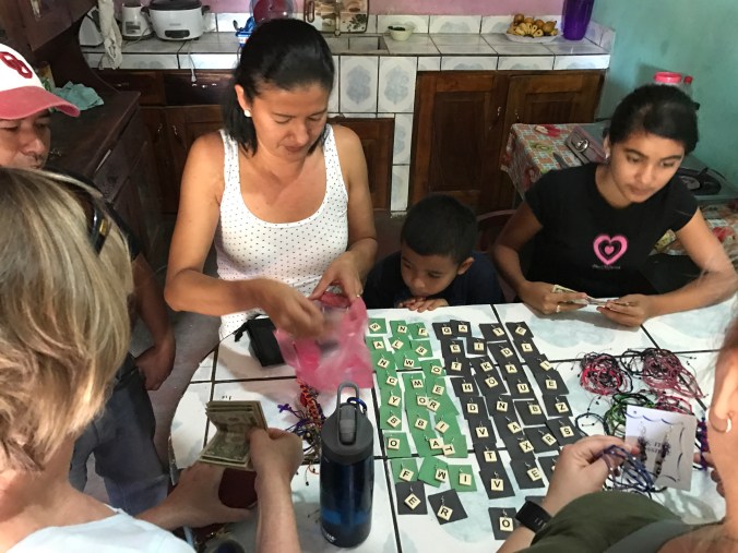 Today was our last full day in Chacraseca. The first half of the day was very full. After breakfast, we first visited Ileana. She shared her story with us — that several years ago she lost her young son, who had been born with a variety of health issues. After his death, she experienced extreme depression. With the encouragement of a friend, she began making jewelry to sell to groups that come through Chacraseca. This creative work helped to pull her out of depression and begin living again.